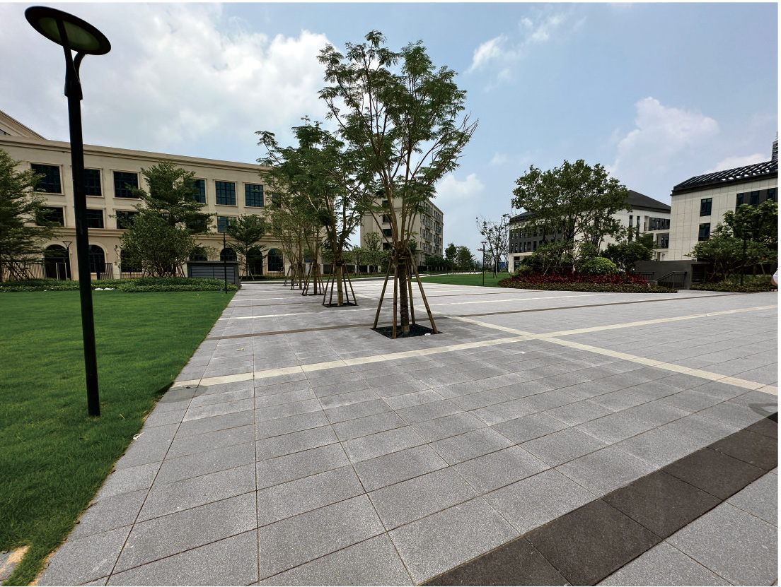表面顆粒較粗,雨水滲透快,不易積水和形成冰層,確保行人安全